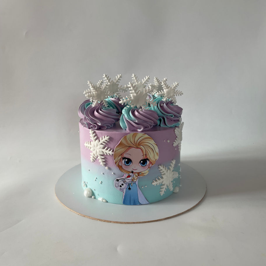 Let it go, let it go, and let the celebration begin with our enchanting Frozen Wonderland Cake! This beautiful single-tier cake captures the magic of a winter fairytale, perfect for your little princess's special day.